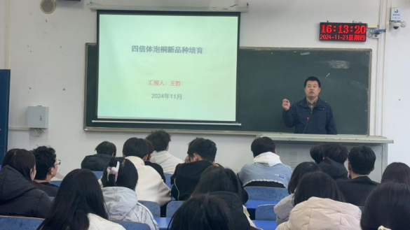11月21日下午15时,365英国上市公司王哲博士在4101教室举办学术讲座,报告题目为《泡桐四倍体培育》,公司23级和24级环境生态工程专业同学聆听了报告。
