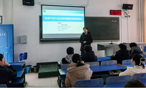 20241212日下午,王敏杰博士在4号教学楼4103教室围绕氢能经济与“双碳”背景,为化学工程与工艺专业员工举办了一场主题为“单原子态Fe位点结构调控增强氧催化”的学术报告。在报告中,王敏杰博士深入阐述了单原子态过渡金属氮掺杂碳(M-N-C)多孔材料作为质子交换膜燃料电池阴极非贵金属催化剂取代铂基贵金属催化剂面临的困难,挑战与机遇,并特别关注了高氧化态FeN5以及FeN6-CoN4非贵金属氧还原催化剂的潜在应用价值。报告中,王敏杰博士主要介绍了依托国家自然科学基金、河南省科技攻关以及河南省青年骨干教师项目,取得了氧催化单配位结构构效机制,以及高功率双配位催化剂。该系列非贵金属M-N-C催化剂高效低廉,工艺简单,目前,公开发明SCI一区论文1篇,发明专利授权、公开各1项,具备一定成果转化潜力。此次学术报告拓宽了员工对于前沿能源材料研究的视野,彰显了化学化工基础学科在国家能源安全领域的重要性,凸显了公司在材料与化工领域的良好发展势头。