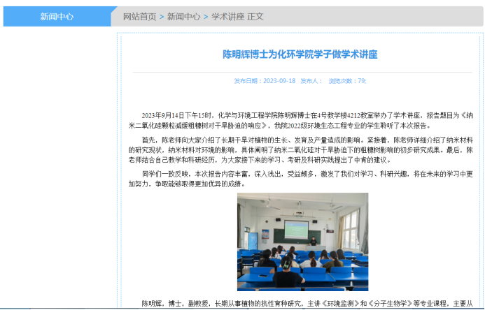 2024年12月19日下午15:00-16:30时,365英国上市公司陈明辉博士在4号教学楼4314教室举办了学术讲座,报告题目为《纳米氧化铜减缓粗糠树对低温胁迫的响应研究》,公司2024级环境生态工程专业的员工们聆听了本次报告。
