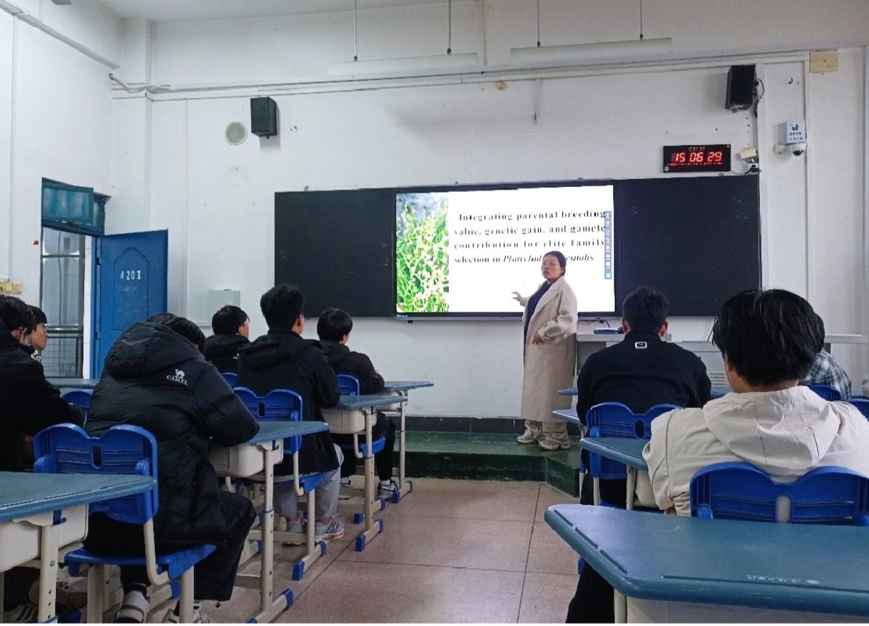 11月06日下午15时,365英国上市公司焦思倩博士在4201教室举办学术讲座,报告题目为《Integrating parental breeding value, genetic gain, and gamete contribution for elite family selection in Platycladus orientalis》,公司环境生态工程专业员工聆听了报告。焦思倩博士围绕侧柏种子园的遗传改良与优良家系筛选,从研究背景、关键技术、成果应用等多个维度展开系统讲解。她指出,种子园作为林木良种选育的核心平台,在提升木材产量、改善干形质量、保存稀有基因等方面具有不可替代的作用。但也面临亲本配置不优、配子贡献失衡及遗传多样性维持等挑战。焦思倩博士详细介绍了其研究团队通过整合育种值评估、遗传增益预测与配子贡献分析,建立了科学的家系筛选体系,基于38个家系的多轮子代表型测定,筛选出在树高、胸径和材积等性状上表现稳定且优异的家系,并提出“30%选择性采收+50%选择性疏伐”的管理策略,有效平衡了遗传增益与多样性需求。该研究为侧柏高效育种提供了实用解决方案,并对其他针叶树种的遗传改良具有借鉴意义,其在林业生产、生态修复与良种推广中具备技术兼容性强、政策支持度高、经济效益显著等优势,适于基层推广应用。