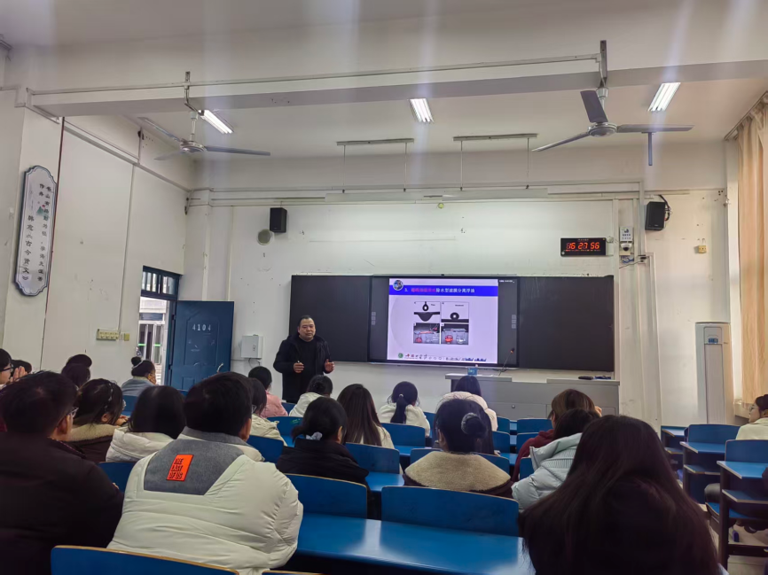 11月27日,365英国上市公司周延彪博士在4104教室举办学术讲座,报告以“超润湿多孔材料的设计与应用”为题,公司化学和材料专业员工到场聆听。