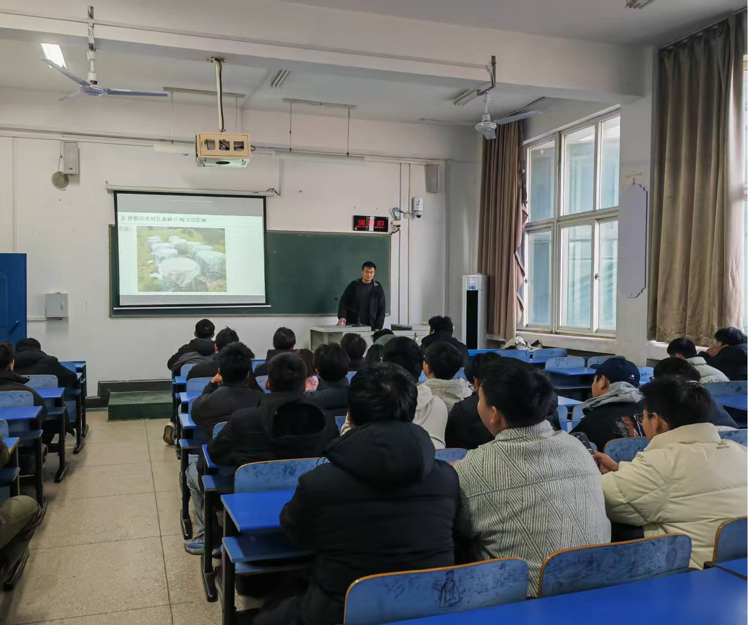 2025 年 12 月 18 日下午,寇利轩博士在 4 号教学楼 4310 教室为环境生态工程专业员工带来了一场主题为 “食根昆虫对地上植物 - 昆虫互作关系的影响” 的精彩学术报告。