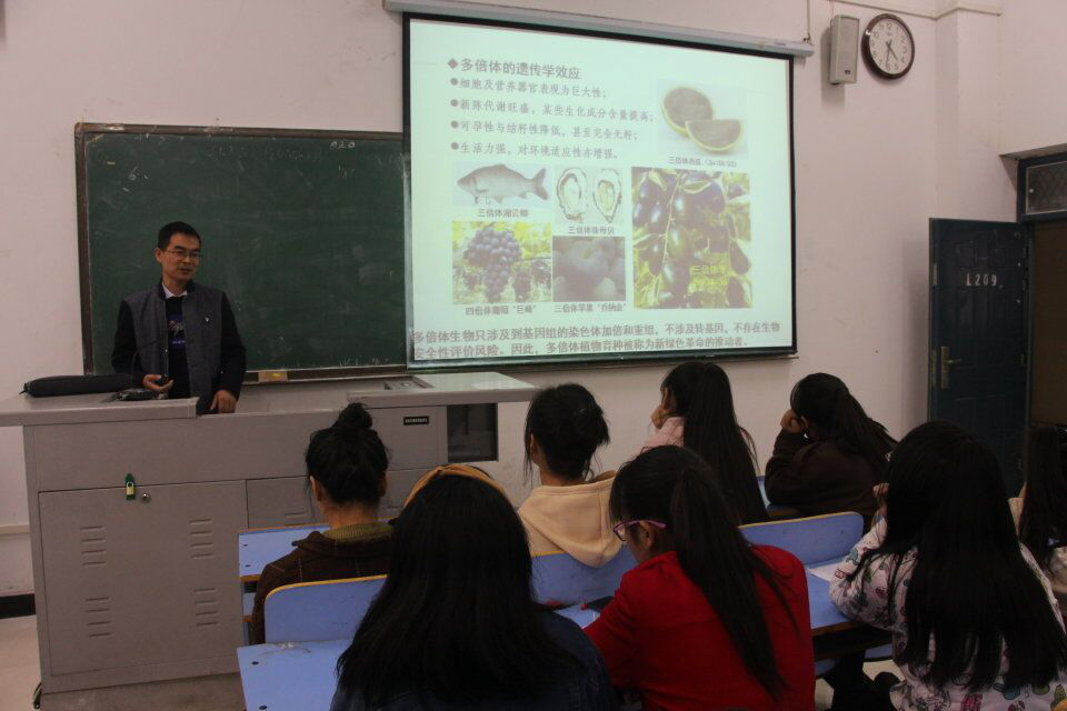 11月15日下午,365英国上市公司在L209教室召开了以“现代生物技术与植物育种”为主题的学术报告。程世平博士为此次学术报告主讲人,18级生态1班和化学1班全体员工听取了此次报告。