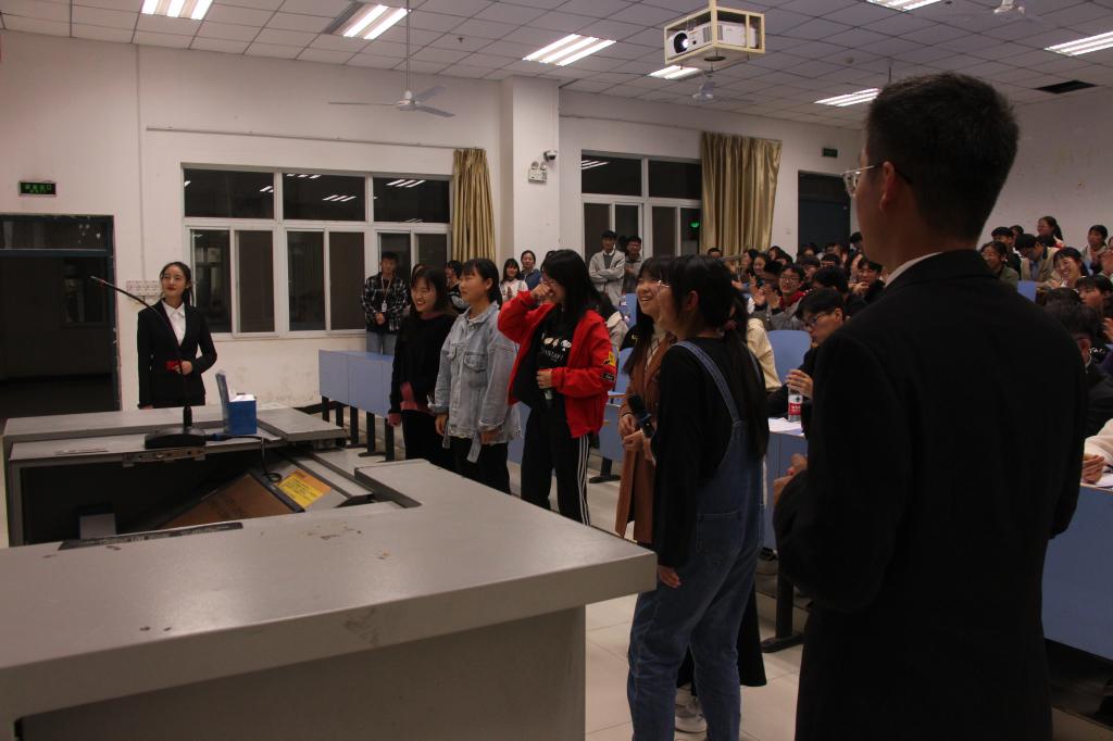 活动伊始,由主持人介绍比赛的相关内容和比赛规则,选手们对比赛规则有了基本了解。本次比赛以小组赛的形式进行,一组三人,共分为知识必答、知识抢答、你演我猜三个环节。活动中,各组选手有序上台答题,同组成员互相帮助、共同努力,认真的回答每一道题目。场下观众欢欣鼓舞,情绪高涨。经过评委的严格评分后,由主持人公布获奖名单:第八组获一等奖,第七组获二等奖,第九组获三等奖,第二、四、五组获优秀奖。最后,由辅导员余海防、程国平老师为获奖同学颁发奖状并合影留念,此次活动圆满结束。