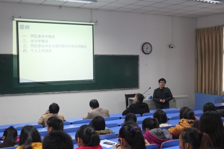 11月12日下午,化学化工公司程立平博士在公司博士论坛作了题为“同位素技术在水循环研究中的应用”学术报告,低山丘陵生态修复重点实验室相关教师及13、14、15级环境生态工程专业全体员工参加了此次学术报告。