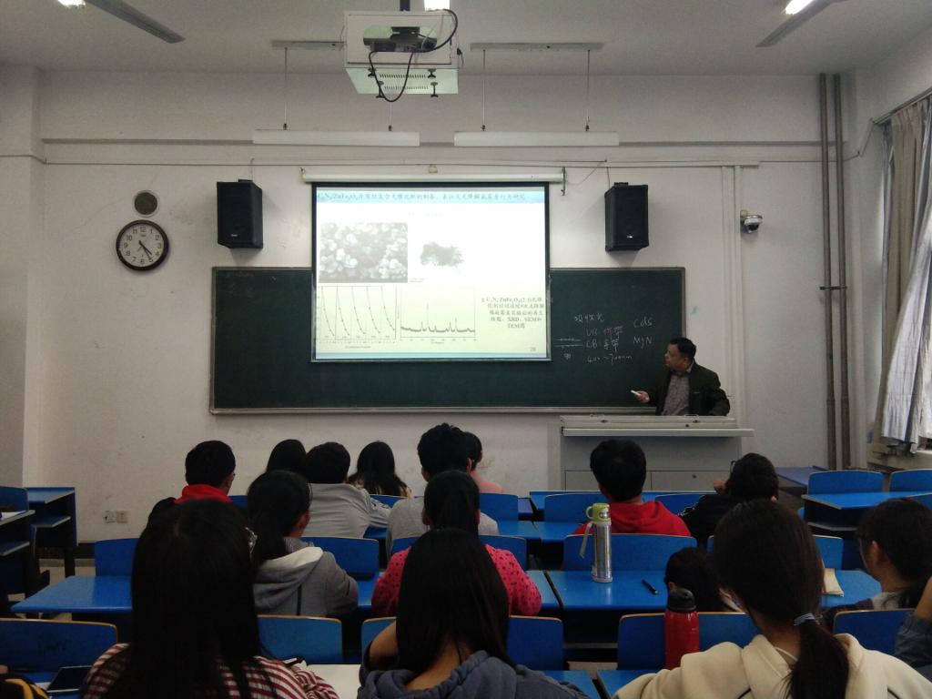 报告会伊始,由马威老师向同学们介绍了抗生素残留的危害以及环境中抗生素残留的去除方法,接着讲解了其中抗生素残留去除方法中的半导体光催化技术的背景知识。马老师的讲解充满趣味,激起了同学们对光化学催化技术的兴趣。最后马老师讲解了光材化材料的类型和目前的研究状况。
