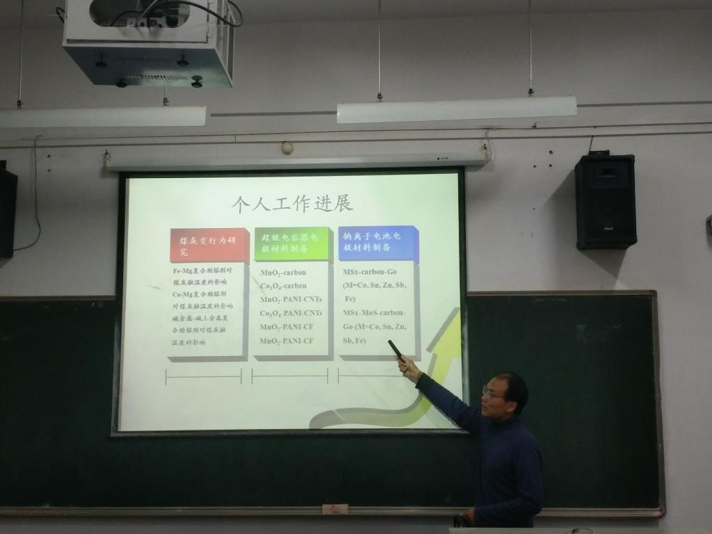 随后,吴华涛老师对电极材料进行了综合讲述。吴老师介绍了几种常见电极材料,并对柔性电极材料的制备方法及工作原理做了详细的讲解,然后吴老师又将他的个人工作进展向同学们进行展示。在报告过程中,两位老师的讲解生动有趣,同学们积极配合老师并加强学术报告中和老师的互动,充分展现了公司浓厚的学习氛围。