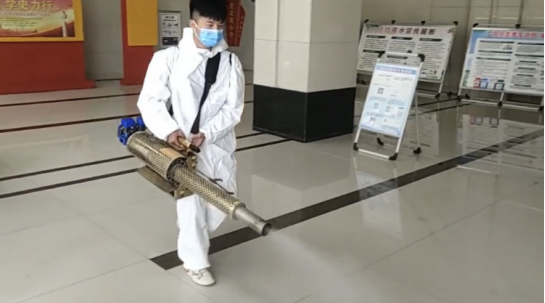 余志海在抗击新冠疫情中进行消杀工作
