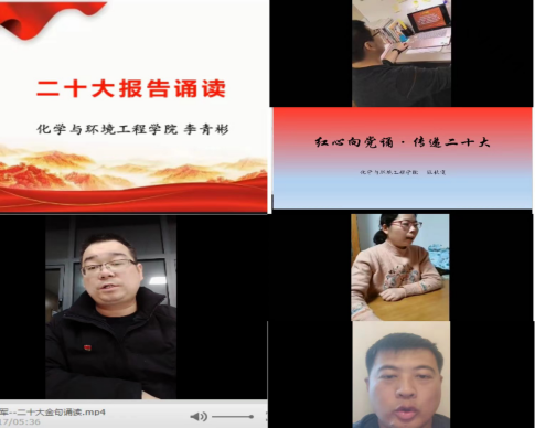 为深入学习宣传贯彻党的二十大精神,11月22日化学与环境工程学院通过短视频、音频等多种形式组织开展了“学习党的二十大,踔厉奋发踏征程”党的二十大报告金句分享诵读活动。