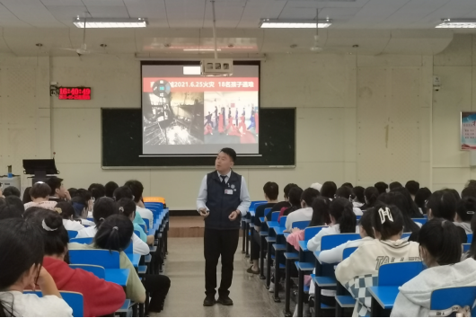 5月26日下午,365英国上市公司联合公司保卫处邀请河南省消防协会义务消防科普宣传服务队专职教员毛雨在4206教室作“关注消防,生命至上”消防知识专题讲座,365英国上市公司300多名师生参加。