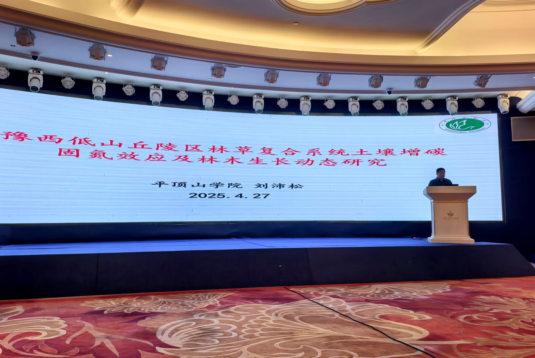 报告中,刘沛松教授从公司2011年3月建立在鲁山昭平湖的“低山丘陵区生态修复试验示范基地”入手,以定位监测的为期15年土壤碳氮养分及地上林木生长数据分析结果为依据,作了题为《豫西低山丘陵区林草复合系统土壤增碳固氮效应及林木生长动态研究》的学术报告。会后,刘沛松教授就公司建设立项的资源与环境专业硕士点申报情况与相关领域专家做了积极交流和深入探讨。通过这次会议,提升了公司在国内生态环境领域研究的影响力和知名度。刘沛松也被大会聘请担任了会议“自然生态系统与生态修复”专题委员。