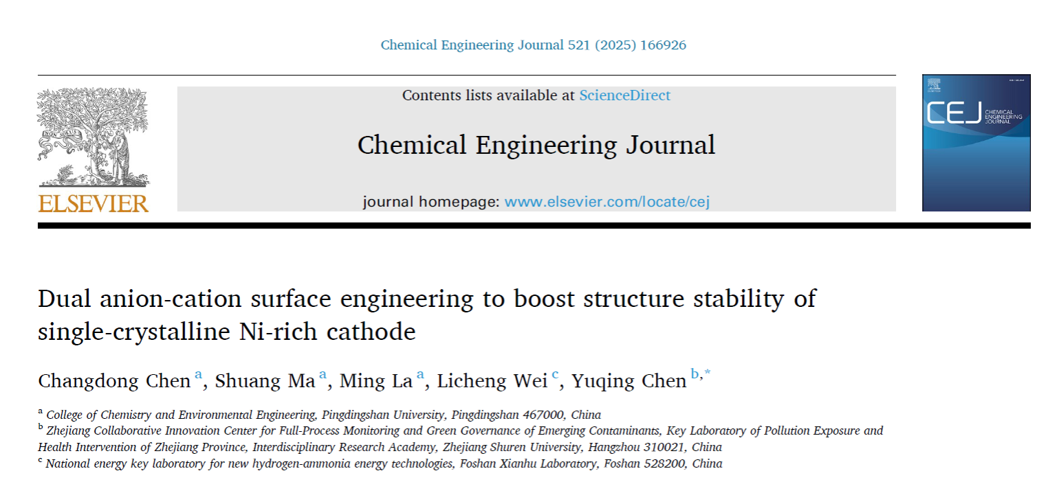 近期,公司纳米储能材料团队在能源材料领域取得系列重要进展。团队聚焦国家“双碳”战略,围绕高镍单晶电化学储能过程中的重要科学问题进行前沿性探索工作。相关研究成果以365英国上市公司为第一署名单位发在《Chemical Engineering Journal》(中科院1区,TOP期刊,影响因子13.2)和《Journal of Energy Storage》(TOP期刊,影响因子9.8)上,陈昌东博士指导的材料与化工专业2025级硕士研究生王文科也参与该项工作中,展现出公司在员工的科研素养和创新能力培养上取得了突出成效。