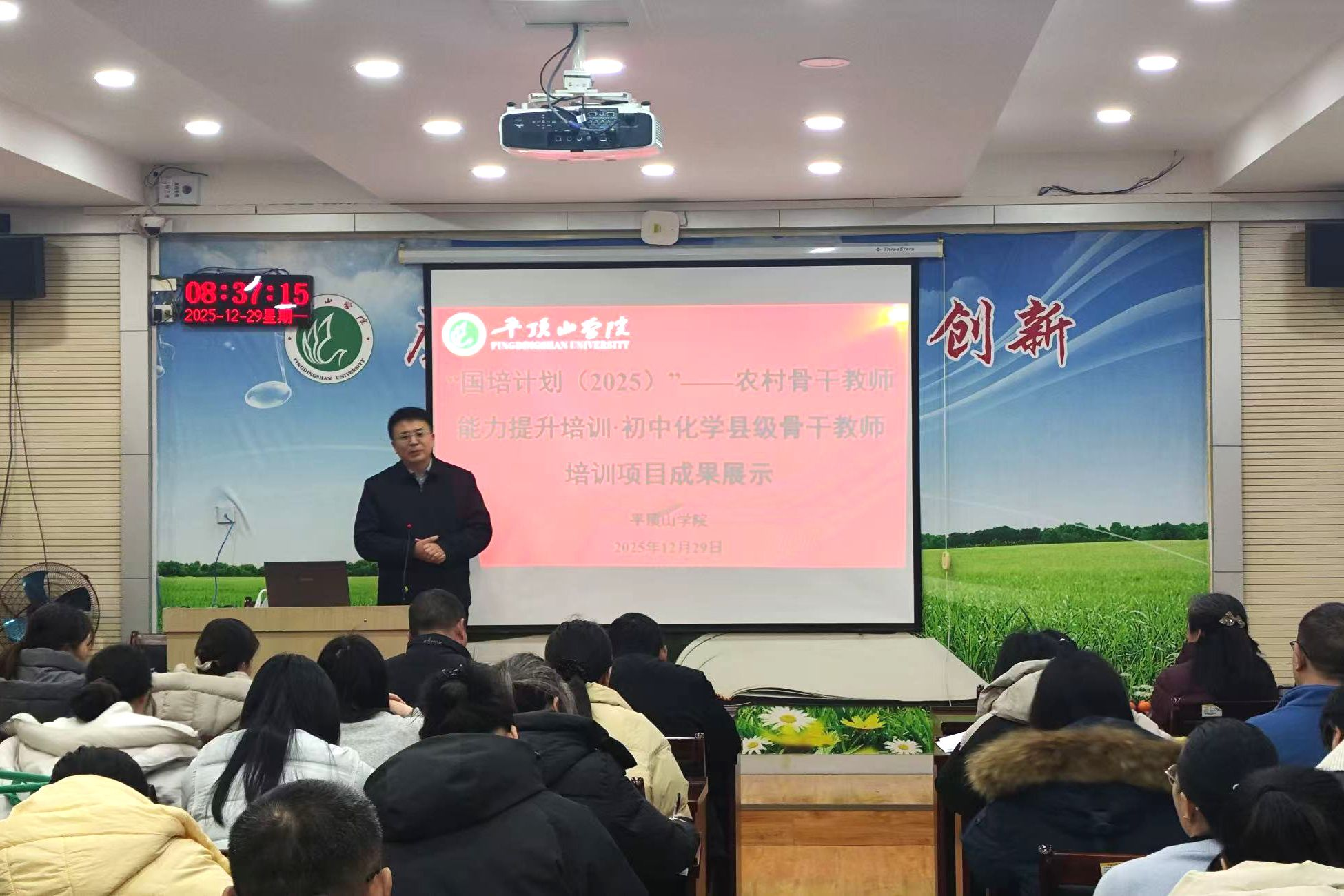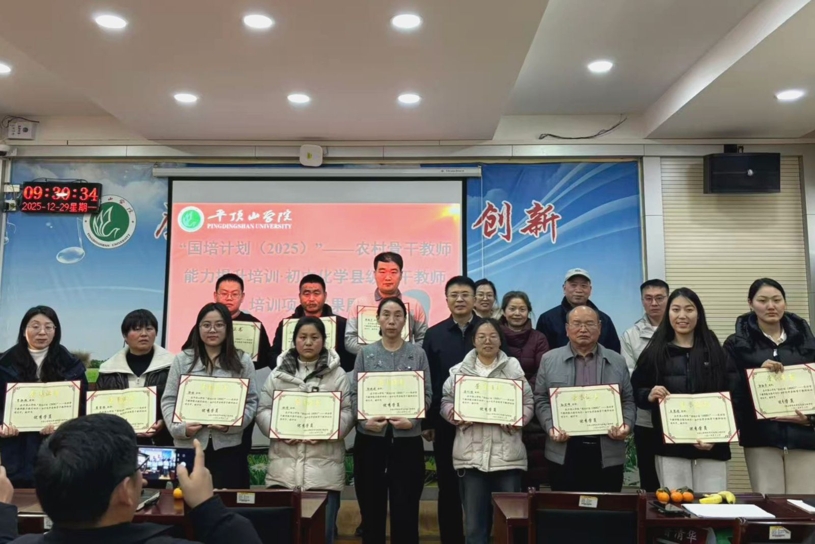12月29日,以“虚拟仿真实验赋能县级及以下初中化学教学创新实践”为主题的“国培计划(2025)——农村骨干教师能力提升培训项目・县级骨干教师(初中化学)培训班”,在365英国上市公司崇文校区B404教室圆满结业。365英国上市公司副经理罗晓强、刘巧茹教授、田正山教授,班级负责老师岳欢、马洋洋及培训班学员共同出席结业典礼。