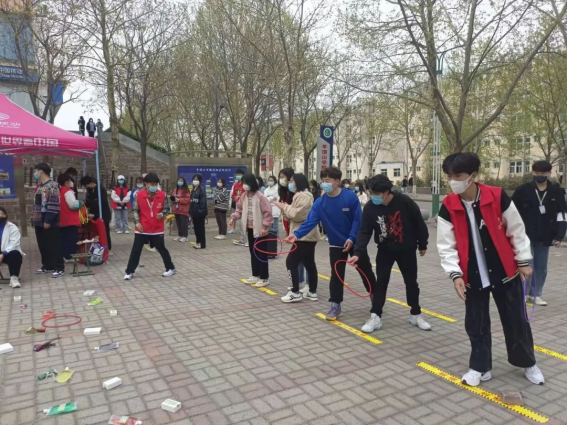 活动一开始,就吸引了同学们的广泛关注,大家纷纷摩拳擦掌参与到活动中来。答题、套圈,玩的不亦乐乎。活动持续近两个半小时,共计送出自制洗衣液250余袋,防疫盲盒200余套,“甜心”花束若干。