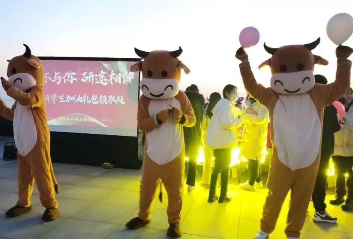 最后,史小倩老师摘下玩偶头套,为同学们送上祝福:希望同学们坚定信念,努力追求自己的青春梦想,全力以赴,争取佳绩,同时要保持积极的心态、健康的体魄去迎接最后的考试。活动最后,21级化学1班杨柳清、21级材料1班石若琳等四名员工带领大家合唱《夜空中最亮的星》、《没有什么不同》,为考研学子助力,活动在优美欢快的旋律中落下帷幕。