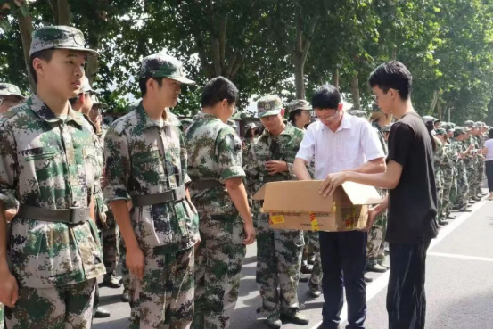 2023级新生军训正如火如荼地进行,9月22日上午,公司党委书记曹萍、经理李青彬、全体辅导员老师、23级代班和班助及党团学社工作人员前往军训场地为军训教官和员工送去酸梅汤,关心并鼓励员工在军训期间追求卓越,成就更好的自己。