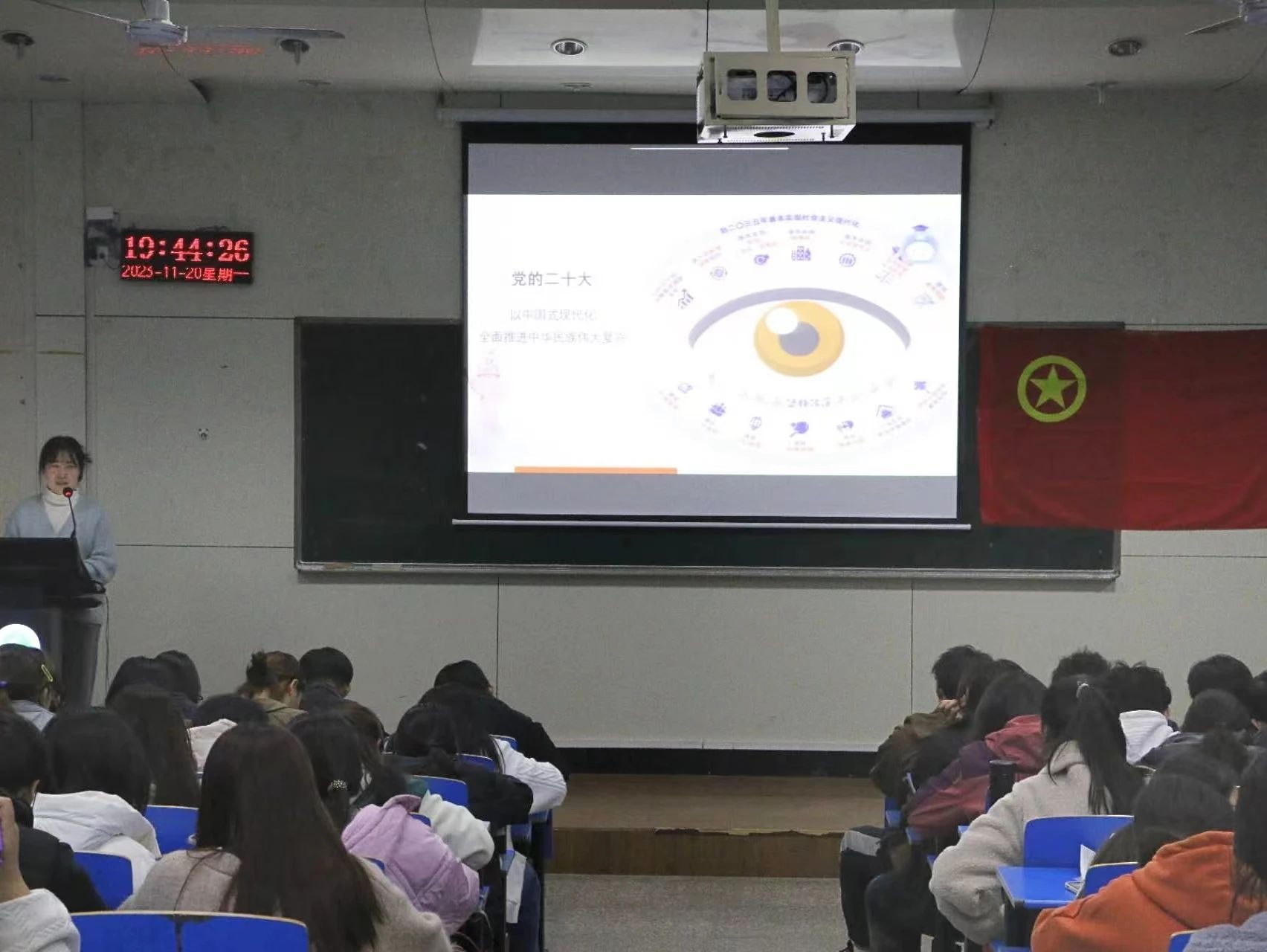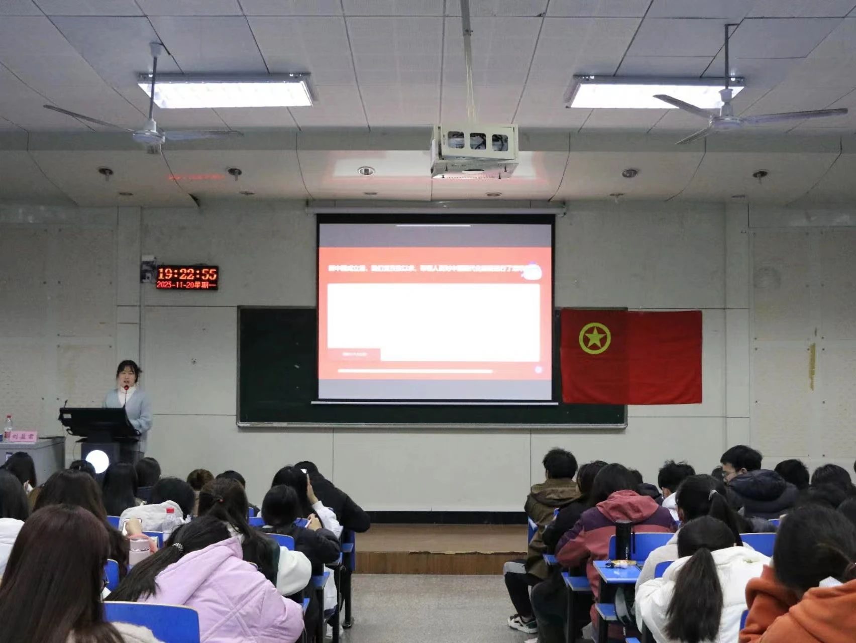 最后,刘盈君从坚持中国共产党的领导、发展全过程人民民主等九个方面阐述了实现中国式现代化的路径,鼓励青年团员牢固树立远大理想、坚定信念,勇于担责、敢于创新,培养综合素质,以青年之力,推动中国式现代化的不断发展。