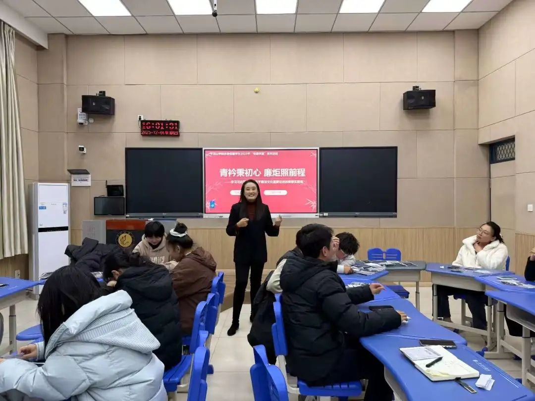 史小倩以《修身为本 清风启航 —— 学习习近平总书记关于廉洁文化重要论述的青春实践课》为题,她系统解读了习近平总书记关于廉洁文化建设的一系列重要论述,阐明新时代廉洁文化是覆盖全社会的文化,更是以廉为荣、以贪为耻的价值导向。此外,她结合革命先辈的廉洁事迹和当代青年廉洁实践案例,引导同学们理解廉洁文化的传承性与创新性。她提出,青年学子要以修身立德为根本,在学术研究中坚守诚信底线,在集体生活中涵养清廉品格,让廉洁文化成为青春远航的精神动力。